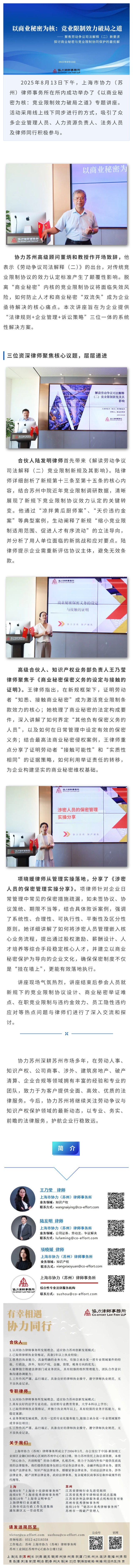 协力大讲堂丨协力苏州成功举办《以商业秘密为核:竞业限制效力破局之道》专题讲座,深度解读劳动争议司法解释(二)新规下的破局策略