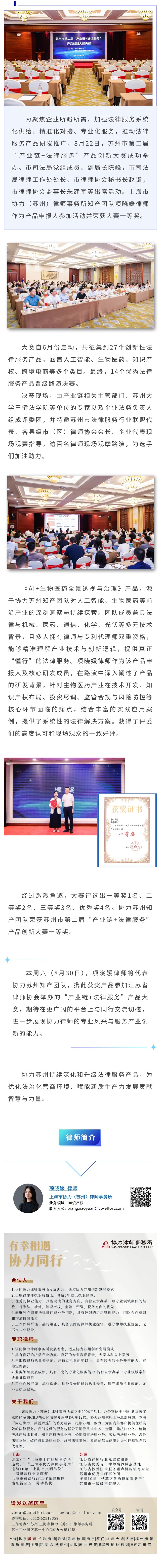 协力荣誉丨协力苏州知产团队荣获苏州市第二届“产业链+法律服务”产品创新大赛一等奖