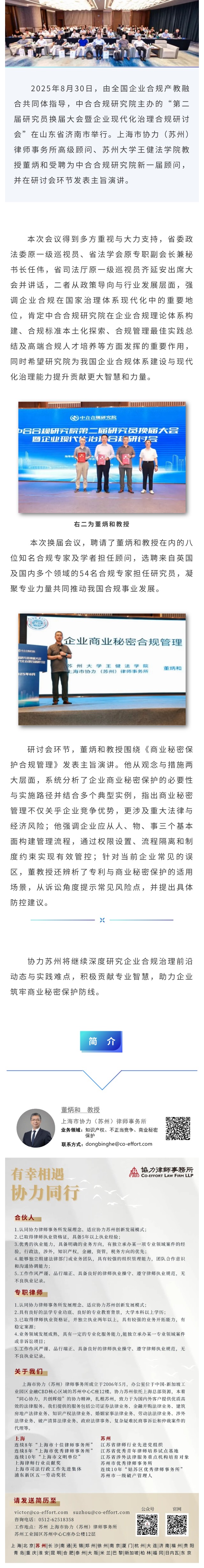协力资讯丨协力苏州高级顾问董炳和教授受聘为中合合规研究院新一届顾问并发表主旨演讲