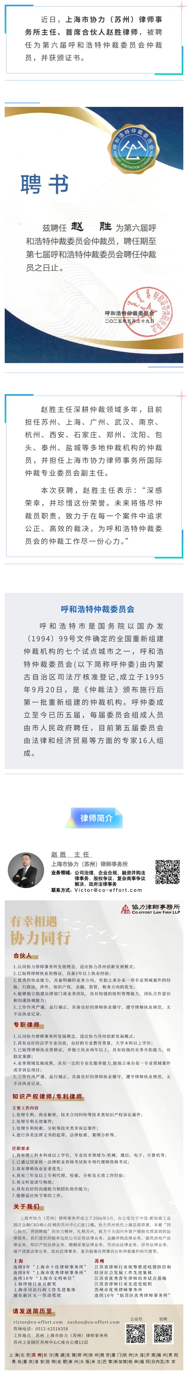 协力资讯丨赵胜主任获聘第六届呼和浩特仲裁委员会仲裁员